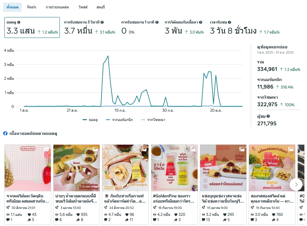 Golden Pine ทาร์ตไต้หวันไส้สับปะรด Facebook Optimize + Ads. วางกลยุทธ์ Content ในเพจของลูกค้า เพื่อเพิ่มปริมาณและคุณภาพทำโฆษณา เพื่อสร้างการรับรู้ และ ข้อความ Facebook