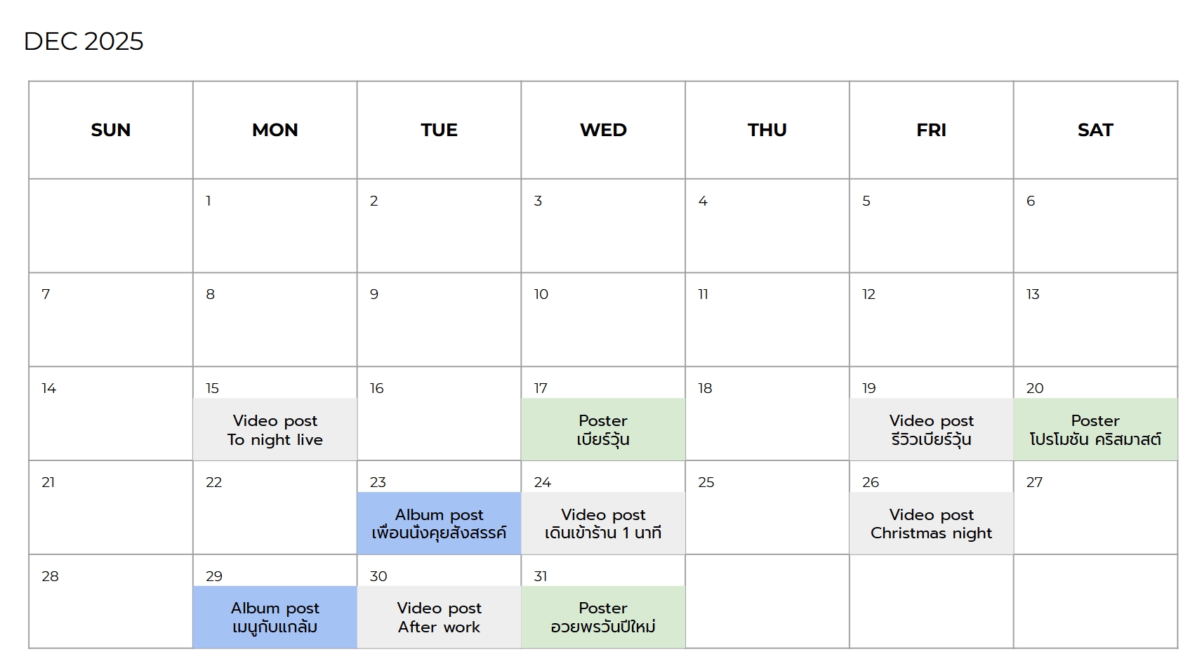 วางแแพลน Calendar